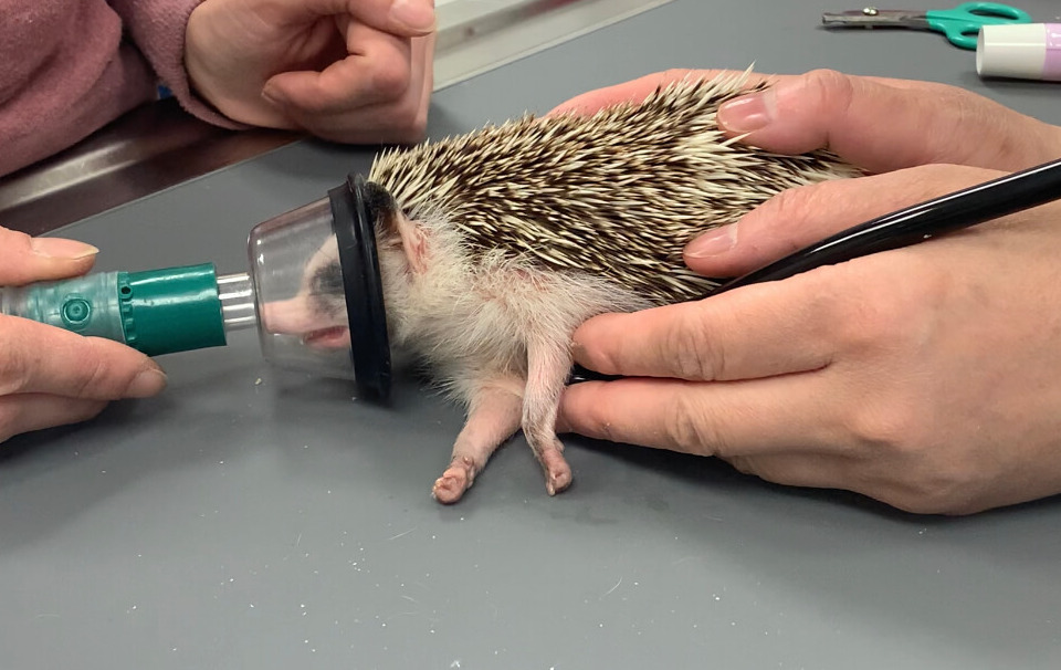 - Vets should always try to conduct a physical examination without gassing (or using anesthesia) first. Another common practice is placing the hedgehog in a shallow container filled with lukewarm water so that they can uncurl for further inspection.