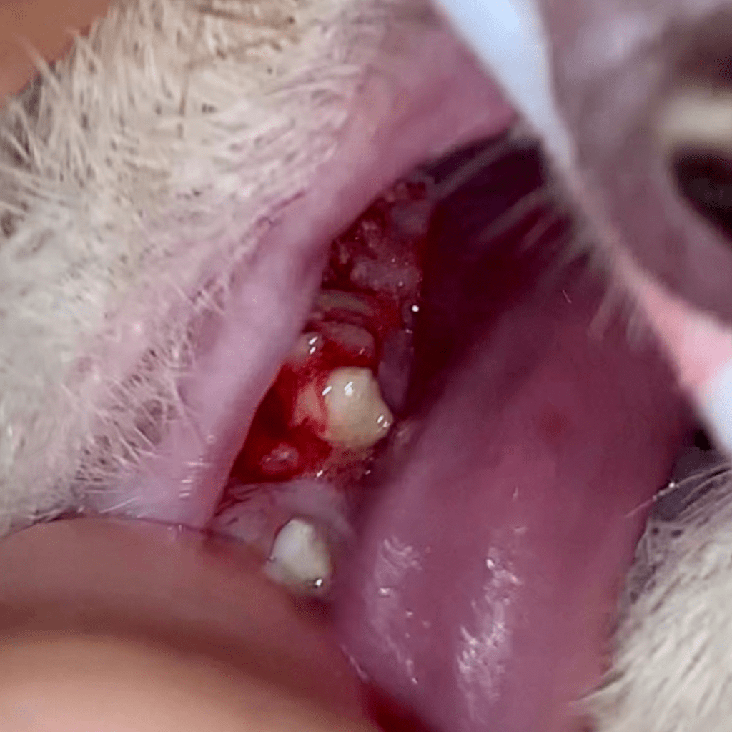 By week seven, I noticed Lou had pretty gruesome bleeding accidents as the tumour growth encapsulated the bones and gums in the lower left jaw. There was no more space for the teeth to stay, and they just fell out one-by-one. There were also ulcers (open wounds) that bleed from time to time, especially after chewing on hard food. I realized this when one of the dehydrated chicken pieces was too big for him to chew on, which worsened the bleeding.